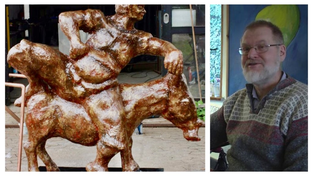 Frank Fenriz is an artist from Kværndrup on Funen who works with sculpture, ceramics and land art. His figurative works transform ordinary human experiences into timeless fables, while his abstract works create wordless moods through shapes and movements. He finds inspiration in film, comics, architecture, design, and philosophical and scientific literature.
