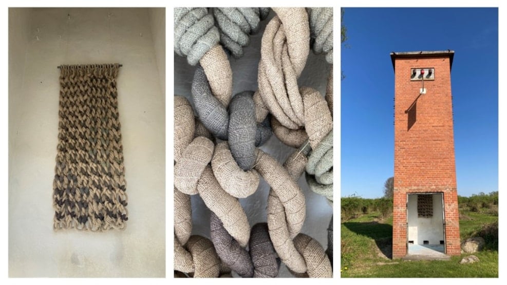 In the middle of Lismosevej in the Langeland countryside stands Kunsttårn 5 – a former transformer tower converted into an art tower with a unique work created by textile artist Annette Jersild. Here, the knot – one of the oldest and most practical human techniques – has been given the leading role in the tactile work ‘Vinterhi’.