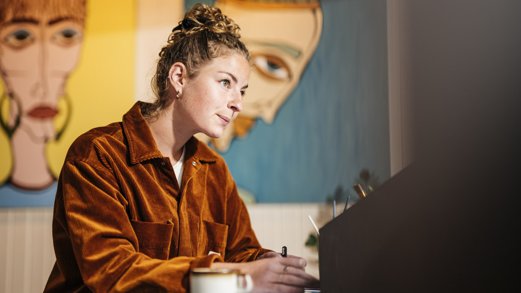 Together with her partner Jens Hornemann, Silje Bruun runs a gallery and workshop in Østergade in Rudkøbing – in the premises where the artist Alfio Bonanno previously worked. Here, Silje works at her large drawing table in the shop area, close to the hustle and bustle of the street and visitors. Her pictures have found their way into art exhibitions and local businesses, and she has been part of Langeland's art scene since her return.