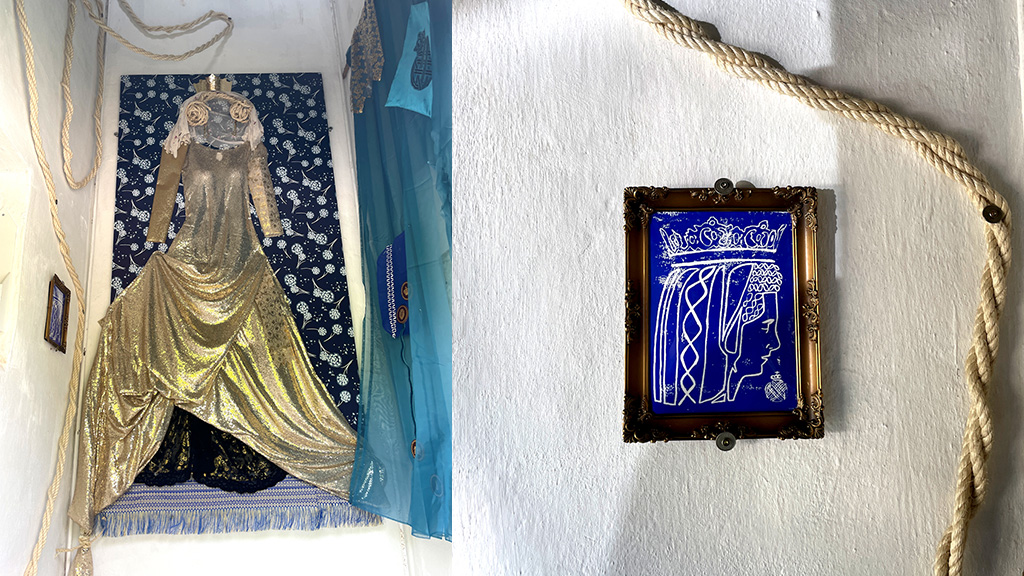 Before the Queen became the centre of attention, Jonna Pedersen toyed with the idea of Rapunzel's braid – a rope, a lifeline, a rescue. Today, the braided rope is part of the work, both as a visual element and as a symbol of connectedness – and as a tribute to female strength and resilience.