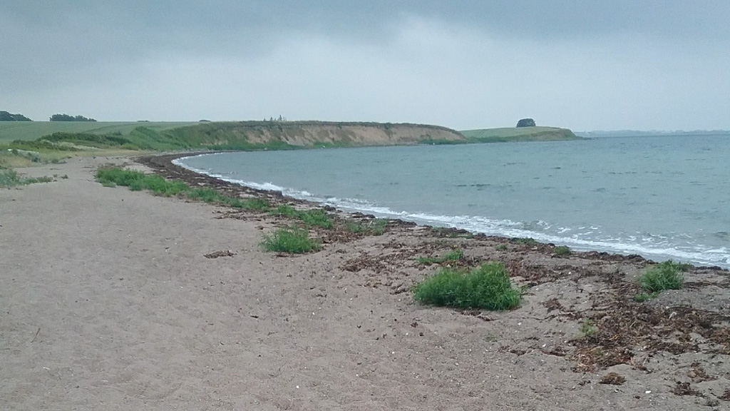 Beautiful beach with views of cliffs. The water is often very calm as the coast is protected from the wind from the neighbouring island of Funen.