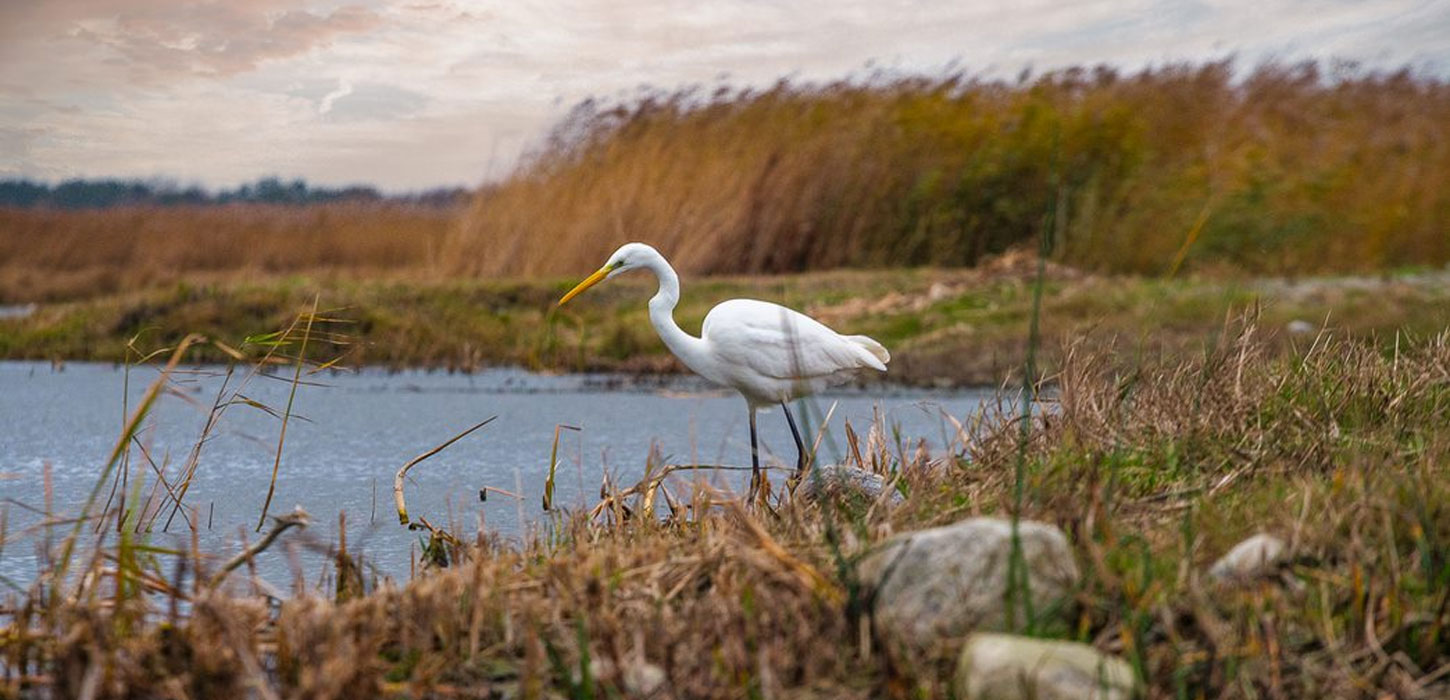 The bittern is a medium-sized heron bird with golden-brown plumage and a wingspan of 125-135 cm. It is a shy bird that hides well in dense reed forests. However, its loud and humming territorial voice, called the timpani, can be heard from several kilometres away in calm weather. The timpani sounds like blowing over an empty bottle and is produced by male bitterns.
