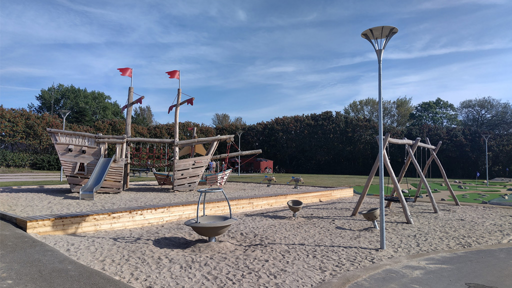 The Community Park offers something for all ages. Try your hand at mini-golf on the 12 challenging holes or unfold yourself on the padel court. For the adventurous, there's a Tarzan course, cable car and a fun KOMPAN playground with an impressive pirate ship.