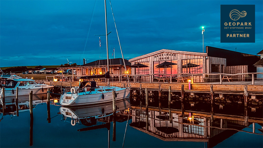 Dageløkke Harbor is a Geopark partner. The Geopark's partners are special businesses that focus on sustainability in their food, nature experiences, accommodations, and more.
