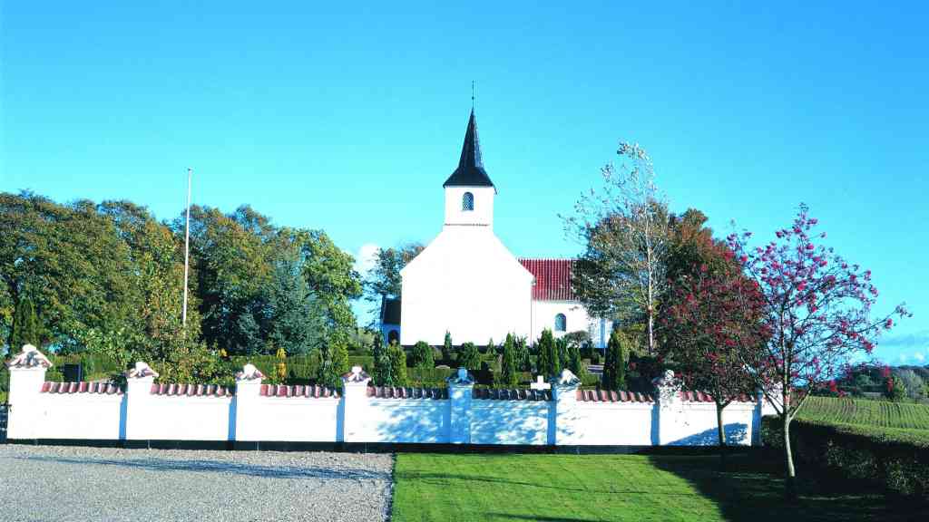 The church lies on a low hill in the village of Fuglsbølle. It is one of the few churches on Langeland without a tower.
