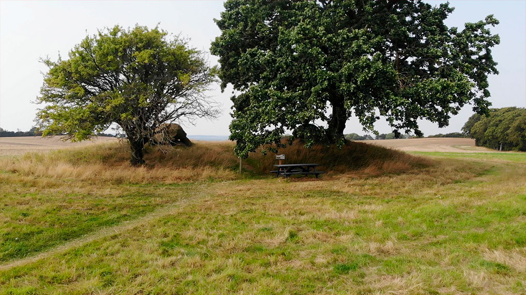 The route south of Tranekær passes several ancient monuments, and you can see both long burial mounds and stone age burial mounds.