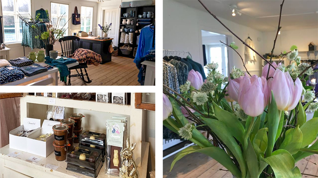 I butikken finder du lækkert tøj, den fineste brugskunst, lækre delikatesser som Summerbird chokolade, karameller, most og specialøl, skønne puder og plaider, det sødeste Maileg legetøj, sæber, cremer, kopper og kander, tørklæder samt ting til haven.