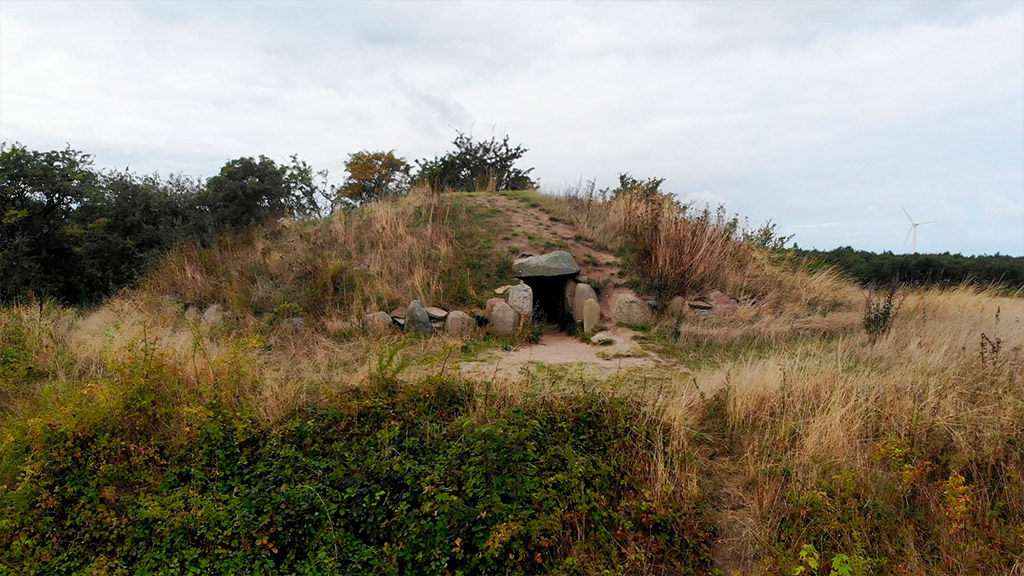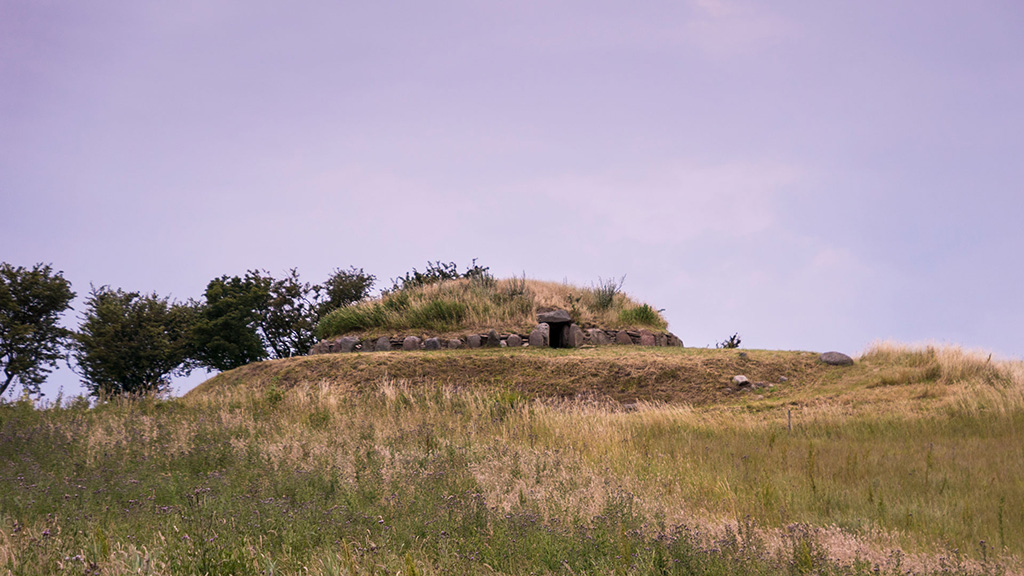 Langeland's best-preserved passage grave is 5000 years old and is situated in a round mound with kerb stones and dry-stone walls. It was used for burials and rituals. Around 1850 at least six similar burial mounds were found in the Hulbjerg area.