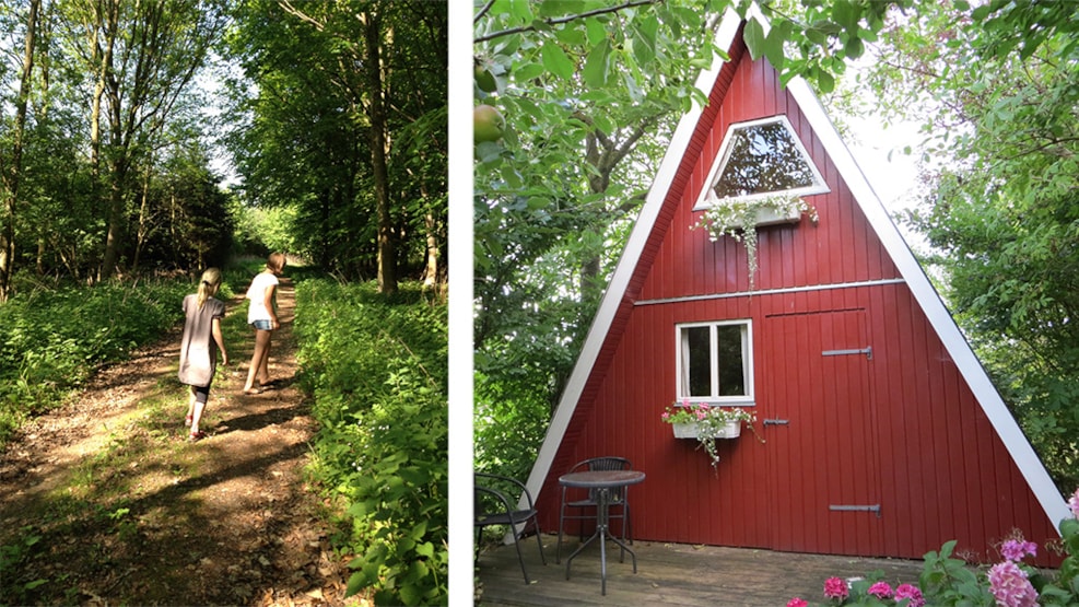 Stay in the charming A-cabin at Krejbjerggaard - close to nature, beach and with room for the whole family.