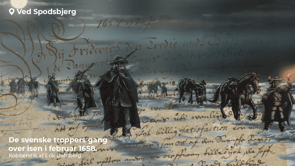 It was at Spodsbjerg that the Swedish king Karl 10. Gustav led his army 12 kilometres across the ice