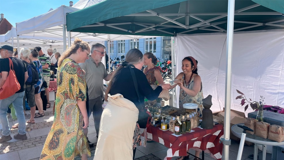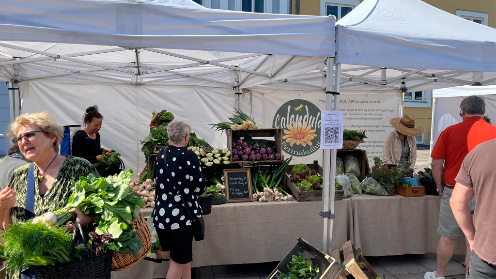 Jeden Samstag findet im Sommer ein lokaler Lebensmittelmarkt statt - direkt im Zentrum des schönen Rudkøbing.