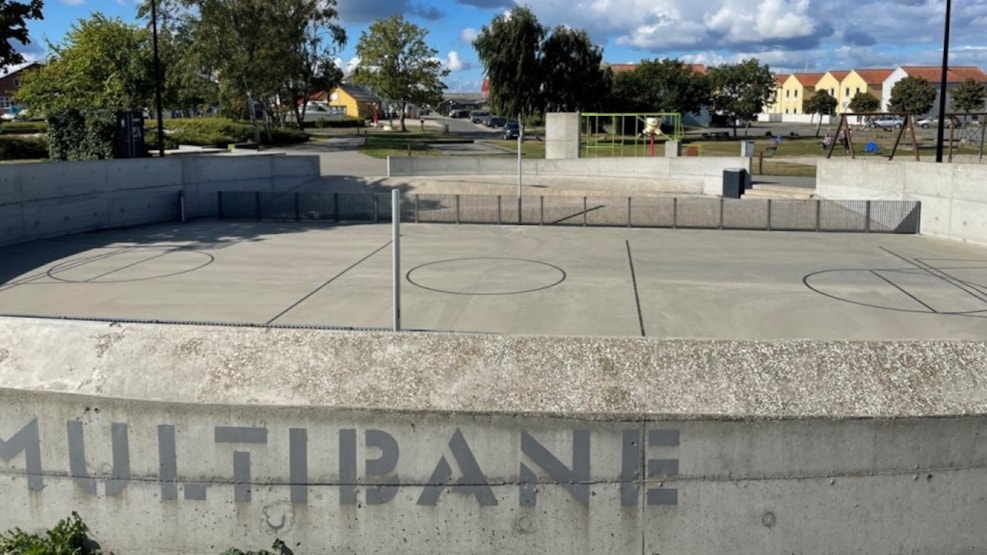The multi-purpose sports court by Rudkøbing Harbour (Skudehavn) is designed by architect Mette Tony in close collaboraion with young people from the area. The court was built in 2014.