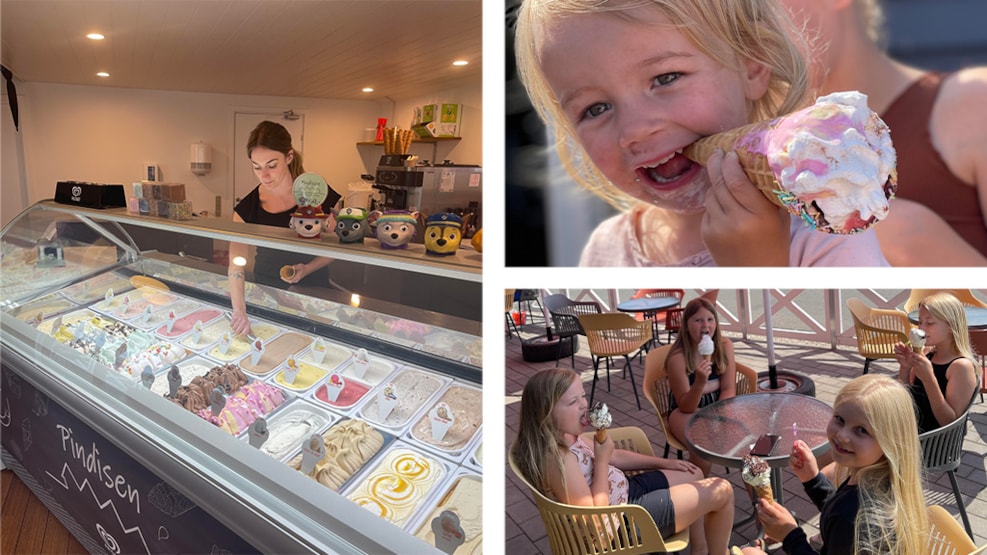 On the harbor sits Pindisen, always offering a wide selection of ice cream for every taste. If you fancy a good old-fashioned waffle cone, it's, of course, topped with airy whipped cream that's always freshly made.