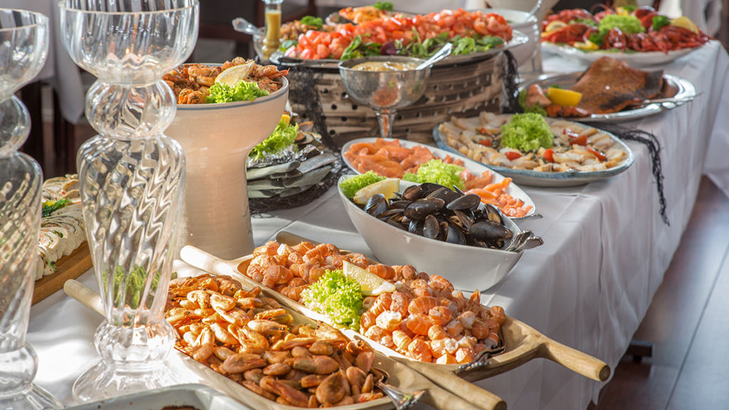 The fish buffet is served from 18.00 and contains i.a.