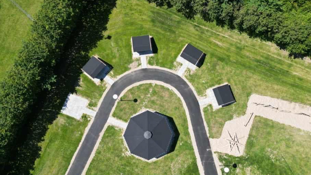 - 4 shelters with room for 4, measuring 3 x 2.2 metres. There is a USB socket for charging a mobile phone in each shelter.