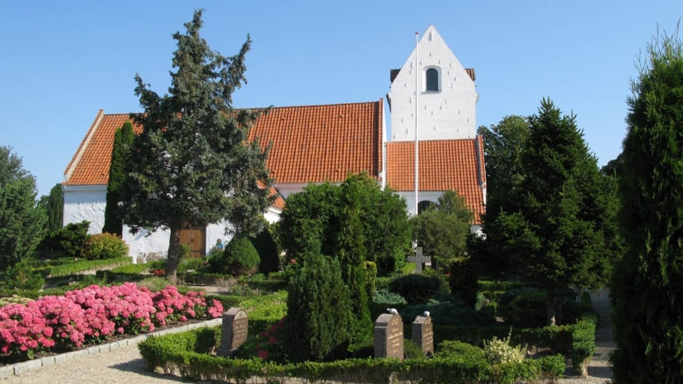 Like many of the churches of Langeland, this church dates from the 13th century, and was build from whole and split large field stones. One feature of note are small heads carved near the base of the corners. General Frederik Ahlefeldt Laurvig covered the costs of a major restoration of the church in the 19th century, while he was the local Count living up in Tranekær Castle. All the church gables and the upper part of tower date from this time. The granite foot of the baptismal font dates from recent times, as does the pulpit, which has also been made Renaissance style. The church’s interior has frescos from 1523 that include an unusual form of Denmarks coat of arms (Arma Danorum).
