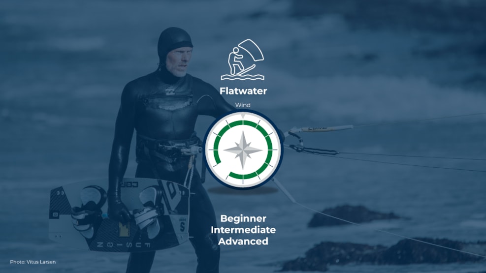 Westerly winds are offshore, but the flat water in the lagoon and the limits of the land-tail provide good safety.