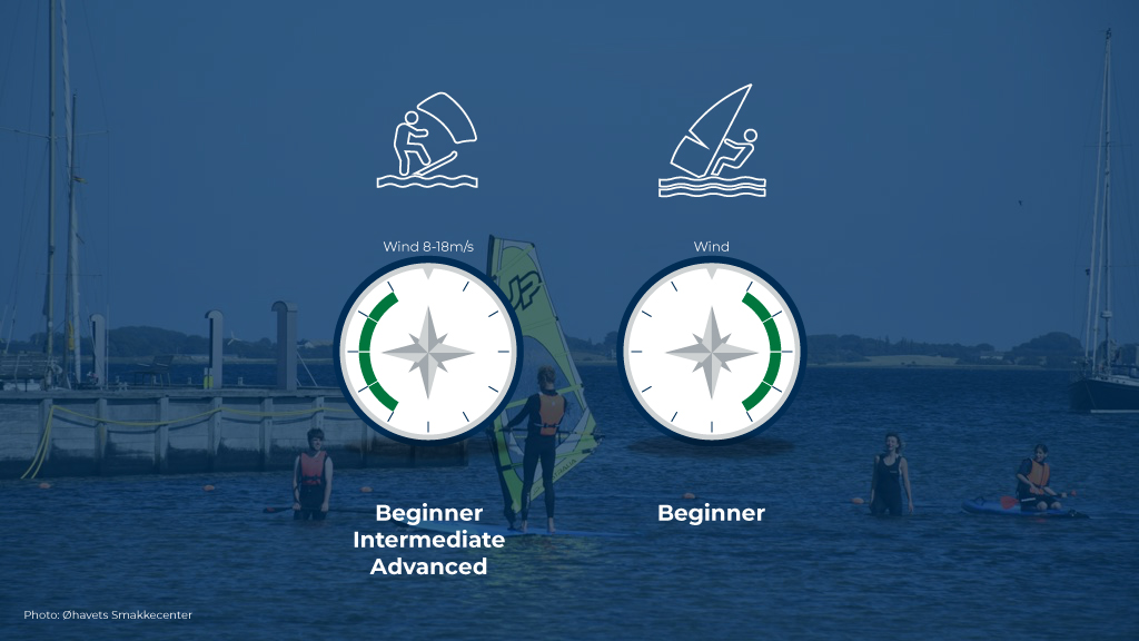 Are you new to kitesurfing or windsurfing? Then the area around Strynø Harbour is perfect for you.