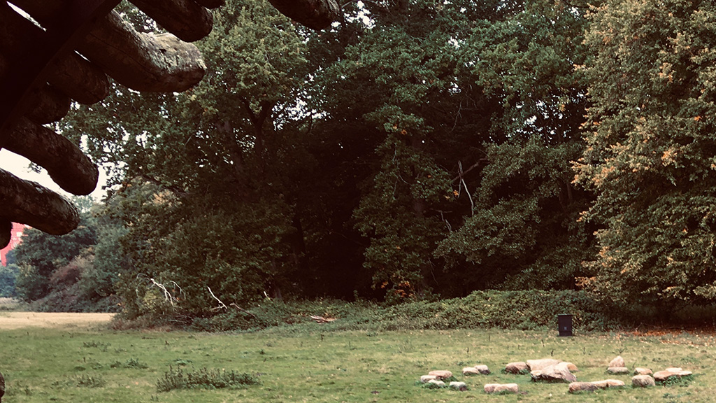 To complement “Et Lydår” artist Alfio Bonnano created the artwork “Lyttekreds” - a name that can be translated as “The listening-circle”. This work marks the ideal position to hear the sound from the four sets of speakers used in the artwork.