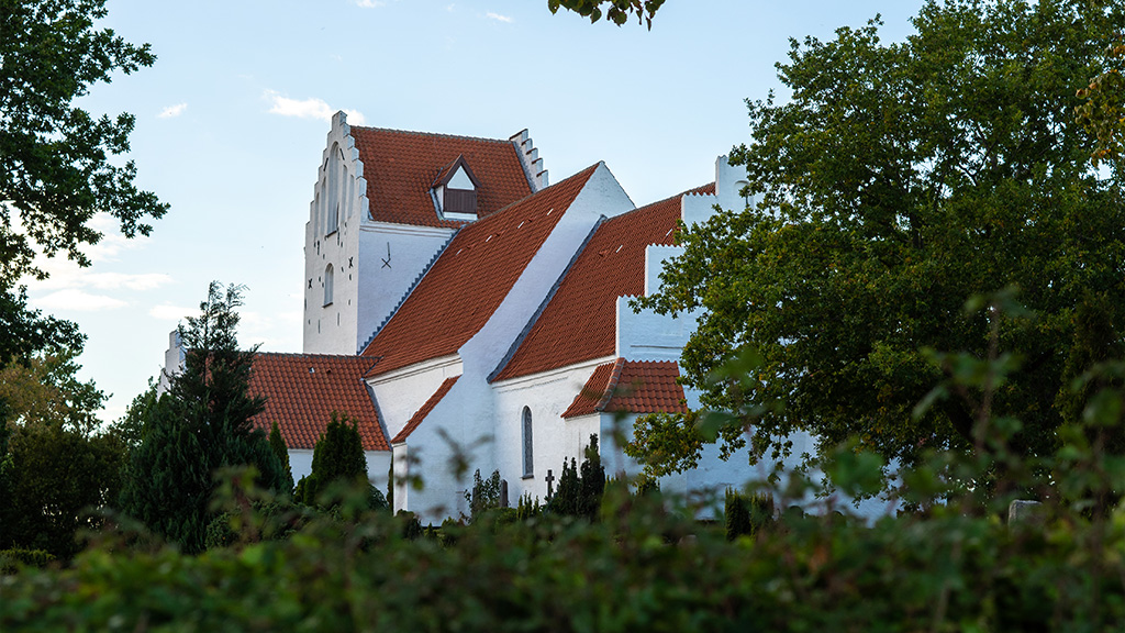 If you drive along the main road through Tullebølle, you cannot avoid passing Tullebølle Kirke which stands overlooking the village.