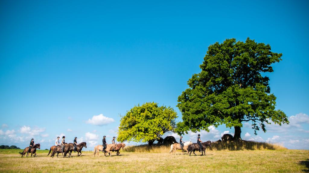 Enjoy a horseback tour in the wonderful countryside around Tranekær on Langeland. See the woods and beaches in a different way from the back of an Icelandic Horse.