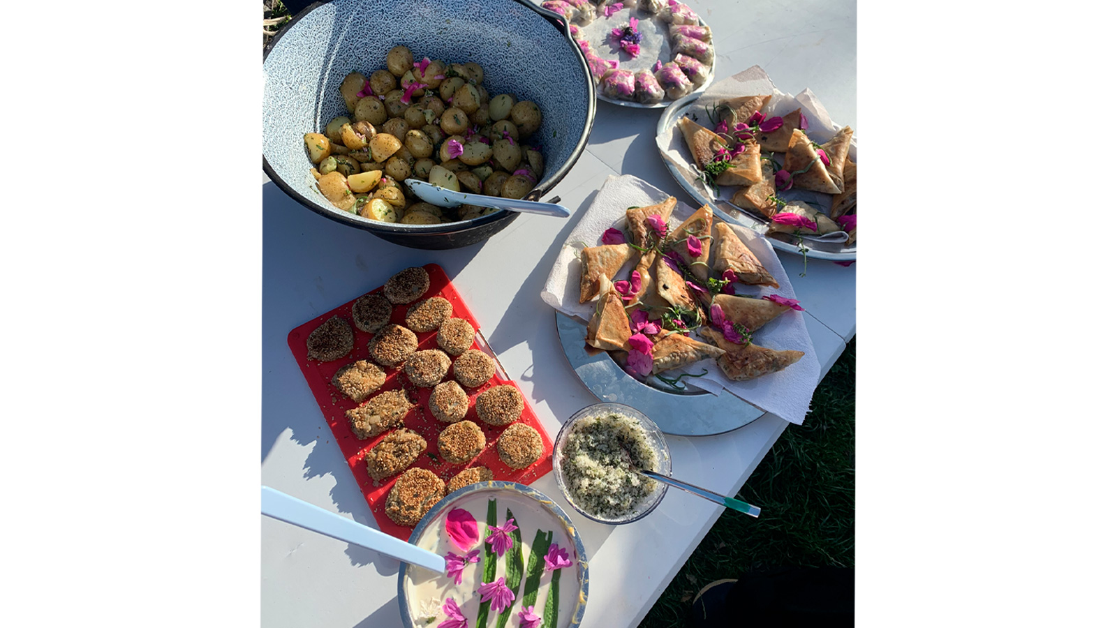 With the basket over our arm, we first explore and collect edible wild herbs from nature and supplement with a few vegetables and herbs from the centre's kitchen garden. Then we gather at the nature centre's outdoor kitchen, where we turn it all into spring rolls, samosas, pestos, herb dishes and other wild delicacies.